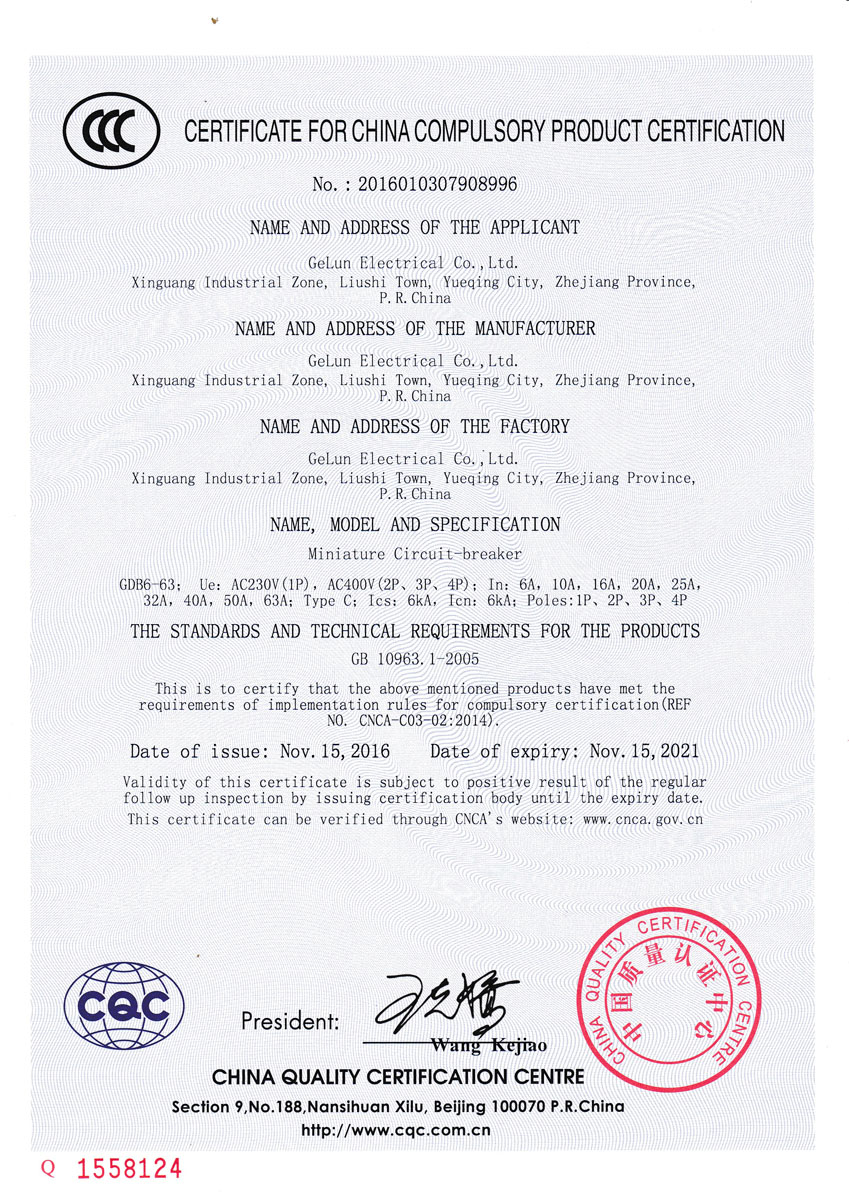 Comply with the IEC60898-1、GB/T 10963.1 Standard