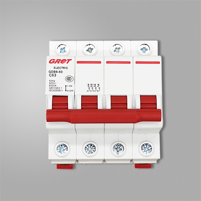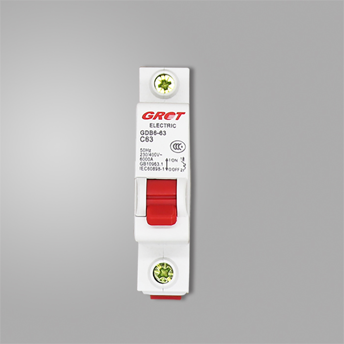 GDB6-63 series high-breaking miniature circuit breaker is suitable for AC 50Hz (60Hz), rated working voltage (1P) 230V/(2P, 3P, 4P) 400V, rated current up to 63A. The circuit breaker has advanced structure, reliable performance, high breaking capacity and modern outlook, used for overload and short circuit protection. It can also be used as an infrequent on-off operation and lighting. The protection characteristic is a C-type.
