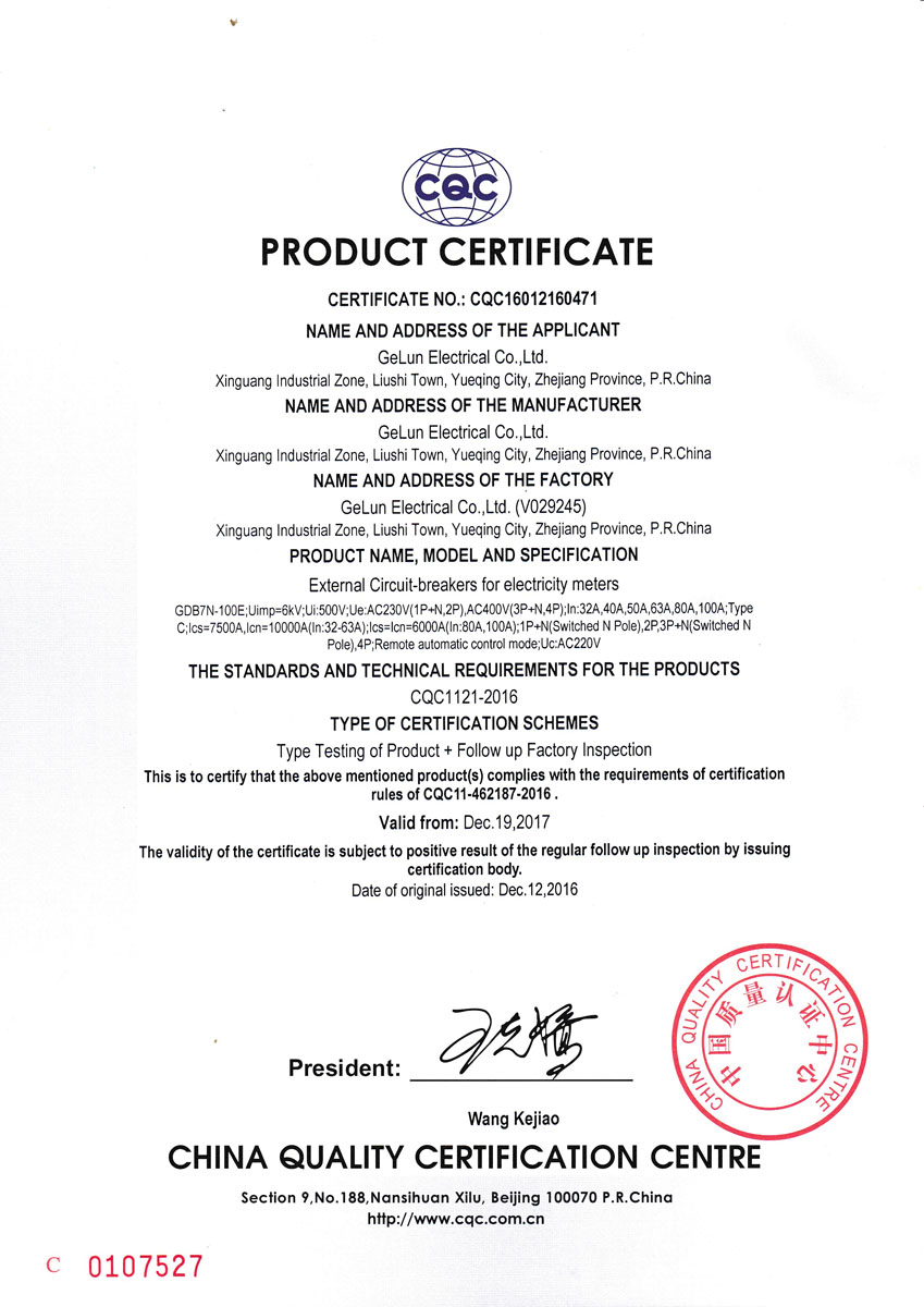 External circuit breaker for electricity meter — GDB7N-100E