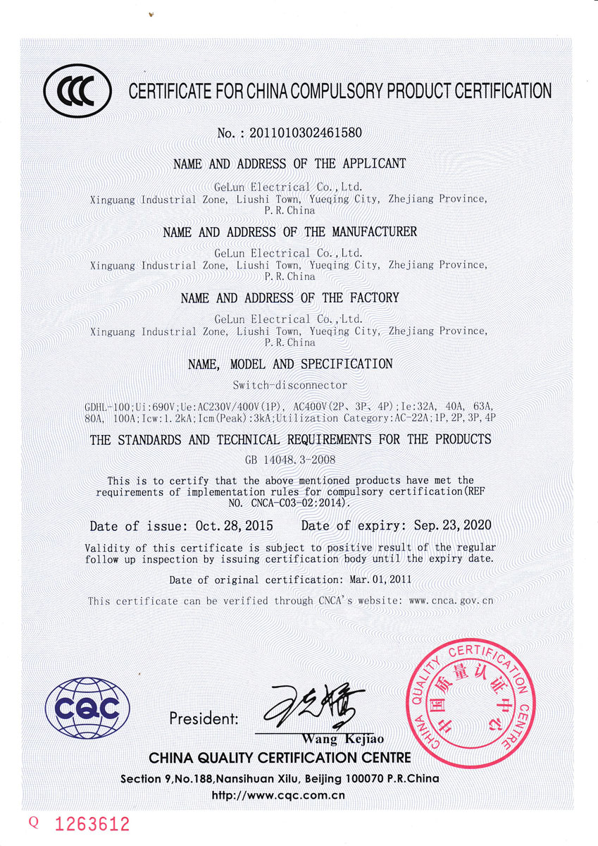 Comply with the IEC60947-3、GB/T 14048.3 Standard