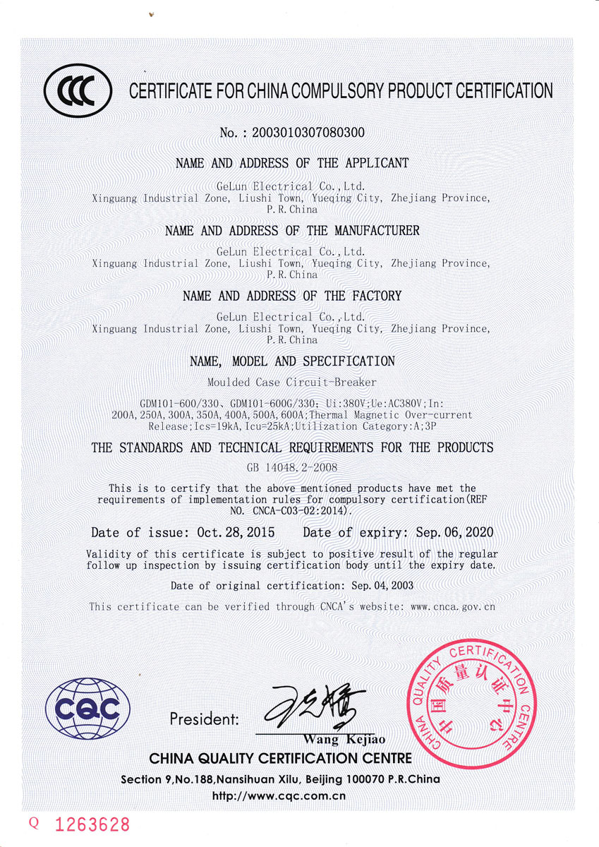 Comply with the IEC60947-2、GB/T 14048.2 Standard