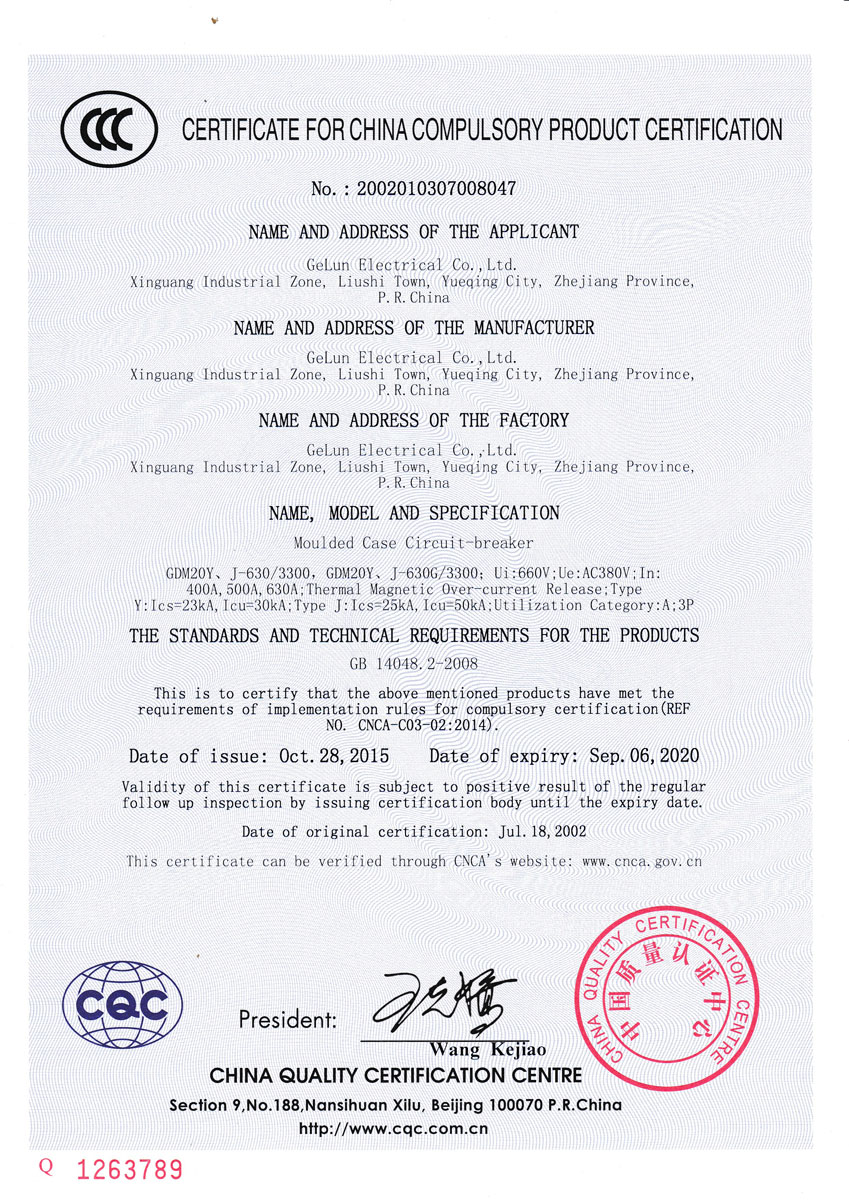 GDM20 Y, J series molded case circuit breakers are used for AC 50Hz rated working voltage 380V and below, and its rated electric current ranges from 16A to 630A. They are generally used in a power distribution, to distribute electrical energy in a distribution network. Among them, Y and J type rated currents of 225A and below and 400Y type circuit breakers can also be used as protection motors. The transparent molded case circuit breaker has a visual switch state with visible breakpoints and can also be used as an isolating switch. The circuit breaker can also be equipped with auxiliary accessories such as auxiliary contacts and shunt release.