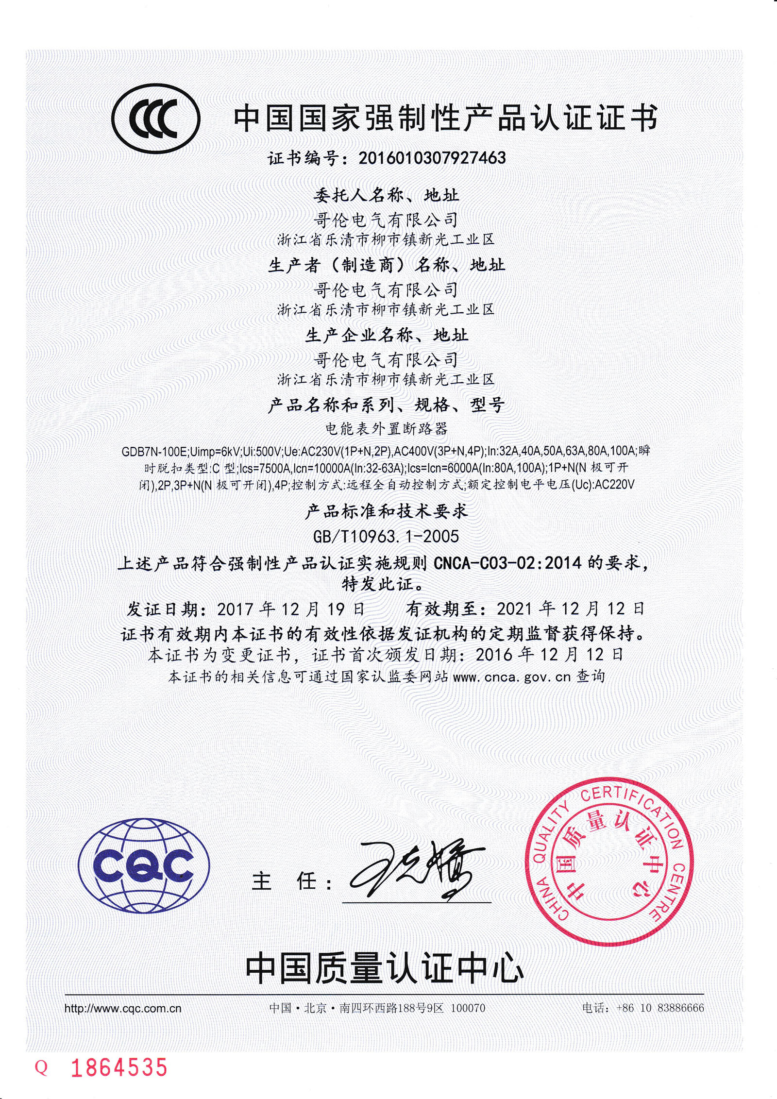 本產(chǎn)品符合GB10963.1《電氣附件家用及類(lèi)似場(chǎng)所用過(guò)電流保護斷路器第1部分:用于交流的斷路器》標準要求。