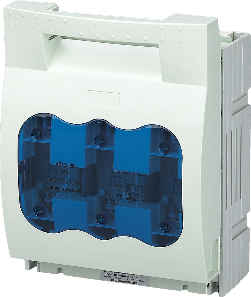 HR17-250系列熔斷器式隔離開(kāi)關(guān)適用于交流50Hz額定工作電壓至690V、約定發(fā)熱電流至250A的具有高短路電流的配電電路和電動(dòng)機電路中,用于手動(dòng)不頻繁操作的電源開(kāi)關(guān)、隔離開(kāi)關(guān)和應急開(kāi)關(guān),并作為電路短路保護之用。